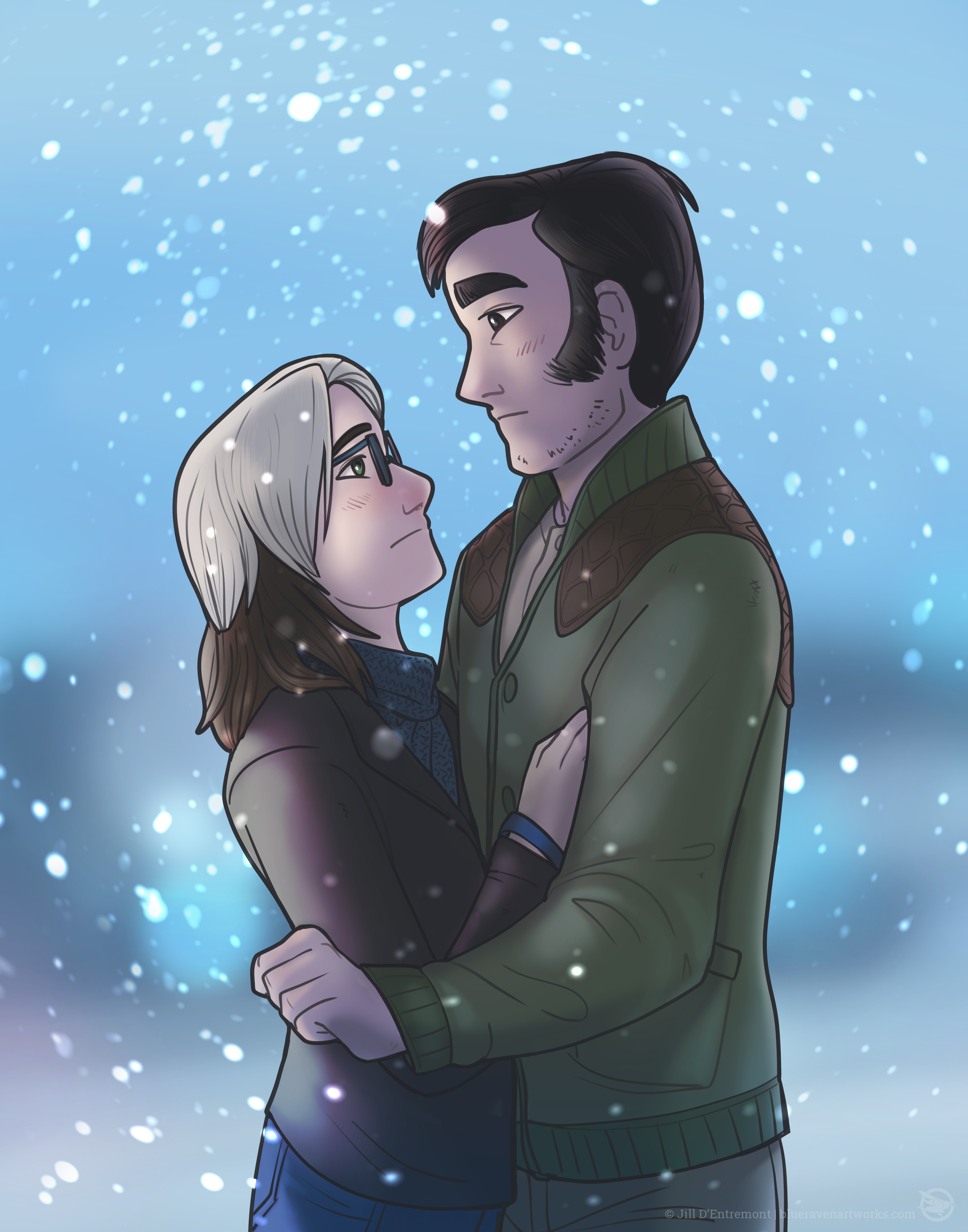 Panel 3. Sidney opens the box. The ring sparkles faintly in the lack of light. Maeliana’s eyes shine in return.